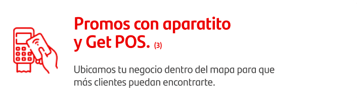 ![]() | Promos con Getnet (5) Ubicamos tu negocio dentro del mapa para que más clientes puedan encontrarte. |